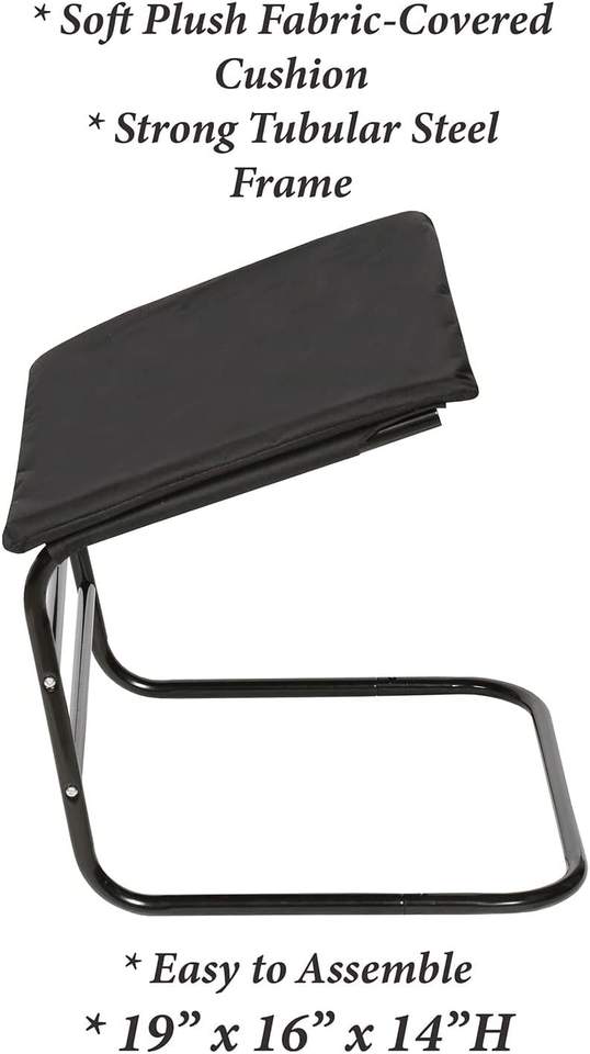 * DETAILS - Leg rest measures 19" wide x 16" long, 14" high. Padded top with black fabric cover. Lightweight, sturdy metal frame.